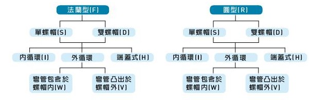 第一種稱為外循環(huán)滾珠絲桿其為螺桿、螺帽、鋼珠、彎管及固定塊組合而成。而鋼珠介於螺桿與螺帽之中,鋼珠的循環(huán)乃經(jīng)由彎管的連接,使其得以在螺帽上迴流;而彎管則裝置在螺帽外部此種型態(tài)稱為外循環(huán)滾珠絲桿。