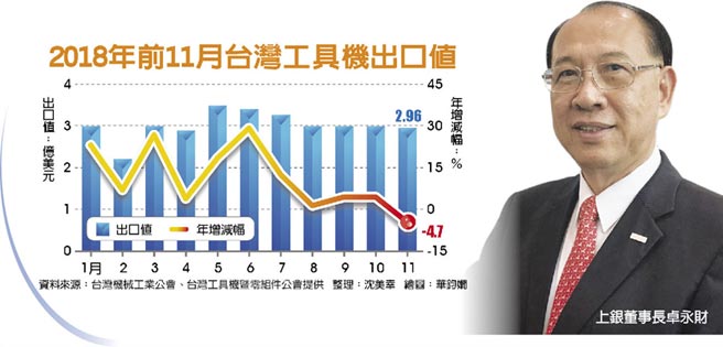 臺(tái)灣工具機(jī)業(yè)遭中美貿(mào)易戰(zhàn)風(fēng)暴掃到,11月出口值跌破3億美元,是今年以來(lái)第一次負(fù)成長(zhǎng),尤其銷往大陸年減幅達(dá)11%。年初各工具機(jī)廠及零件廠全面加班趕工盛況不再,部分中小型工具機(jī)廠11月起,鼓勵(lì)員工每周五放特休假,實(shí)質(zhì)周休三日。