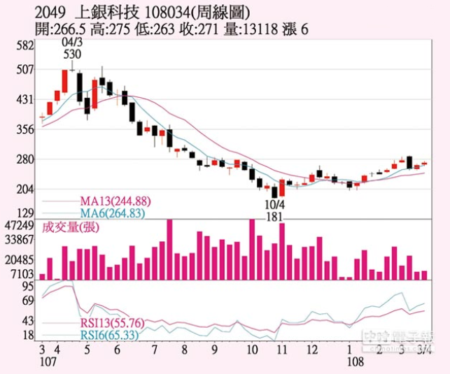 上銀科技前二月合并營收雖年減23.96%,隨著工具機產(chǎn)業(yè)景氣可望3、4月落底,最慢5月回升,第二季營運比第一季好,逐季好轉,布局半導體、電子及汽車產(chǎn)業(yè)亦有斬獲,上周五外資及自營商連手賣超560張,終場平盤271元作收,站穩(wěn)周、月及季線,周漲幅2.26%。