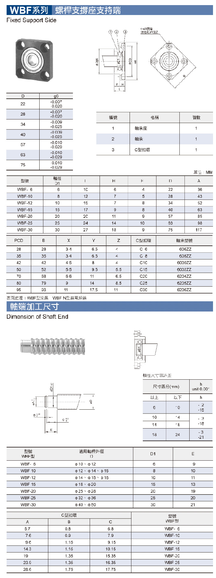 HSK絲桿,HSK絲桿支撐座WBF系列特性:
