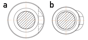 ?標(biāo)準(zhǔn)螺帽的外徑大小,采用循環(huán)管組件可涵蓋在其圓周內(nèi)之 「圓周型(W)」如圖a所示 。 ?若有需要時(shí)亦可縮小螺帽外徑,循環(huán)管組件超出其圓周的「 管凸出型(V)」,如圖b所示 。 |