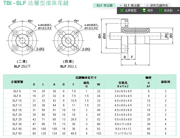 凸緣式花鍵副如上圖所示,根據(jù)花鍵套的形式分為圓柱形和正方形兩種?;ㄦI軸外圓有120°等分排列的三條軌道凸起部分與花鍵套相應(yīng)部位將滾珠夾持在軌道凸起的左右兩側(cè),形成六條負(fù)載滾珠列,花鍵套脫落花鍵軸,滾珠也不會脫落。