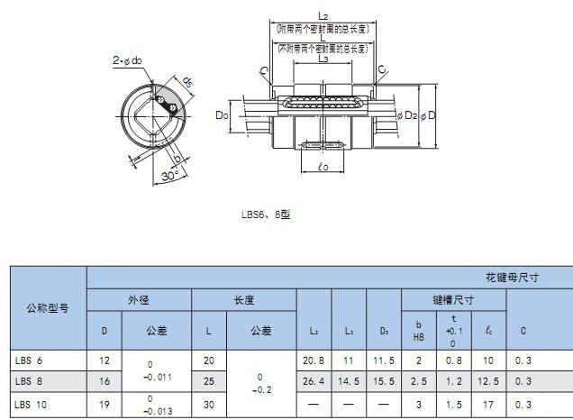 ●因滾珠的循環(huán)都在花鍵軸承套內(nèi)經(jīng)部進(jìn)行 ,故花鍵軸承套外徑可小型化。